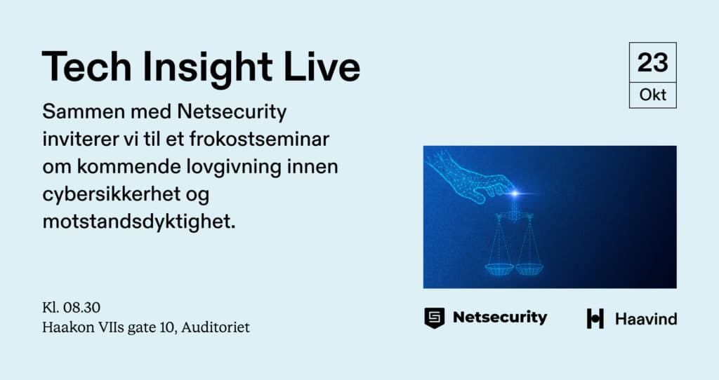 Bli med på Tech Insight Live 23. oktober, og få oversikt over kommende lovgivning innen cybersikkerhet og et dypdykk i hvordan du kan tilnærme deg kommende forskriftskrav til risiko og sikkerhetsstyring.