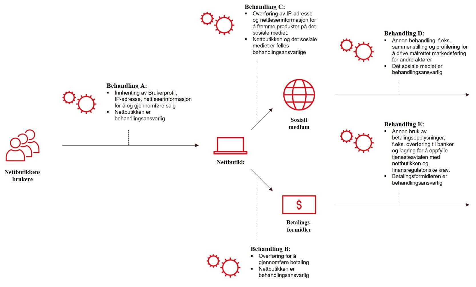 Dersom din virksomhet bruker «Like-knapp» eller andre programtillegg som overfører persondata til tredjeparter på nettsiden, kan det foreligge felles behandlingsansvar. Virksomhetene har i så fall et felles ansvar for å overholde GDPR, herunder å informere brukerne og etablerere et behandlingsgrunnlag for overføringen (f.eks. innhente samtykke).