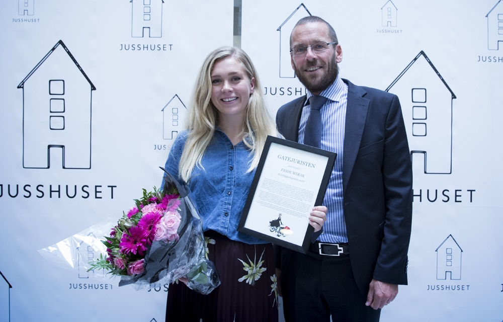 Vi gratulerer trainee Fride Wirak med Gatejuristens Frivillighetspris 2017. Prisen er nyopprettet og går til en frivillig som har utmerket seg særskilt. Bakgrunnen for prisen er at Gatejuristen ønsker å sette fokus på den betydelige innsatsen de frivillige legger ned og den forskjellen de er med på å skape.